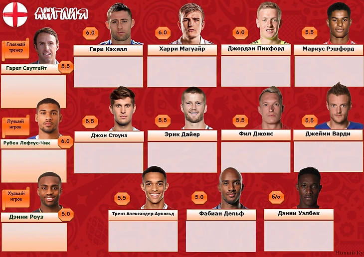 Англия (3-5-2): Пикфорд – Джонс, Стоунз (Магуайр, 46), Кэхилл – Александер-Арнольд (Уэлбек, 79), Дельф, Дайер, Лофтус-Чик, Роуз – Варди, Рэшфорд