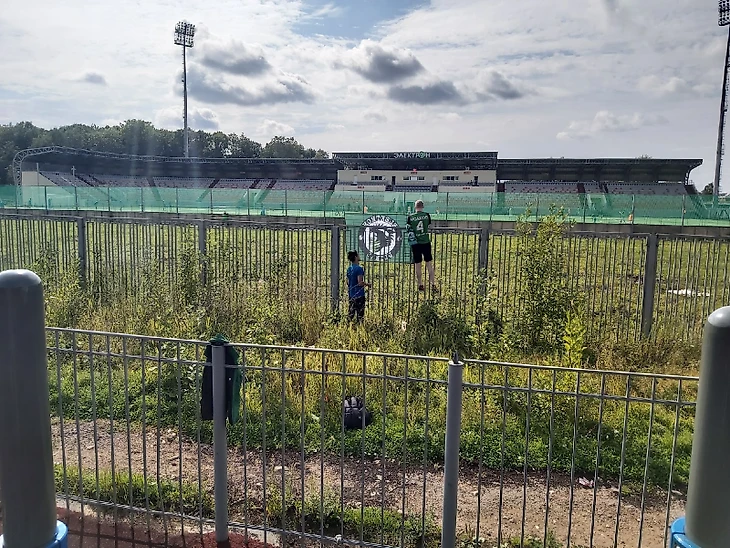 Попытка гостевых фанатов забраться на забор и смотреть игру оттуда была пресечена сотрудником «Электрона». Несколько минут они бродили вокруг стадиона в поисках нового места, но обойдя все возможные точки и даже попытавшись забраться на крышу хозяйственного корпуса, были вынуждены вернуться назад.