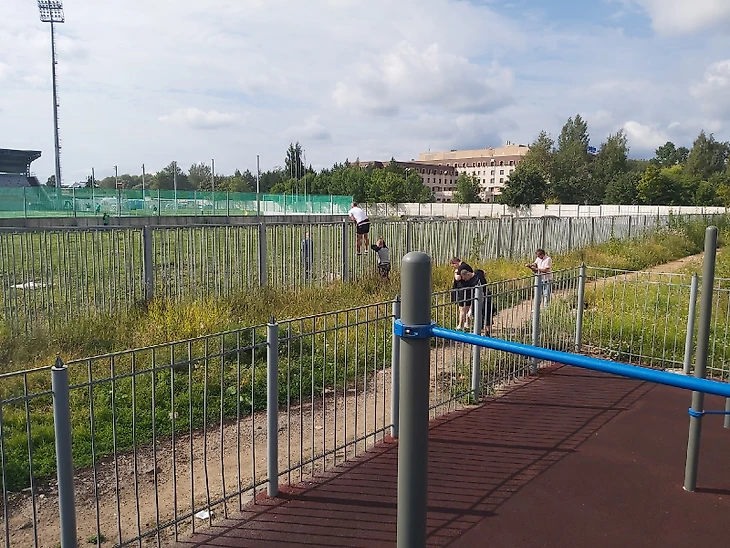 Площадка находится прямо напротив стадиона. За несколько минут до матча на ней практически нет занимающихся.