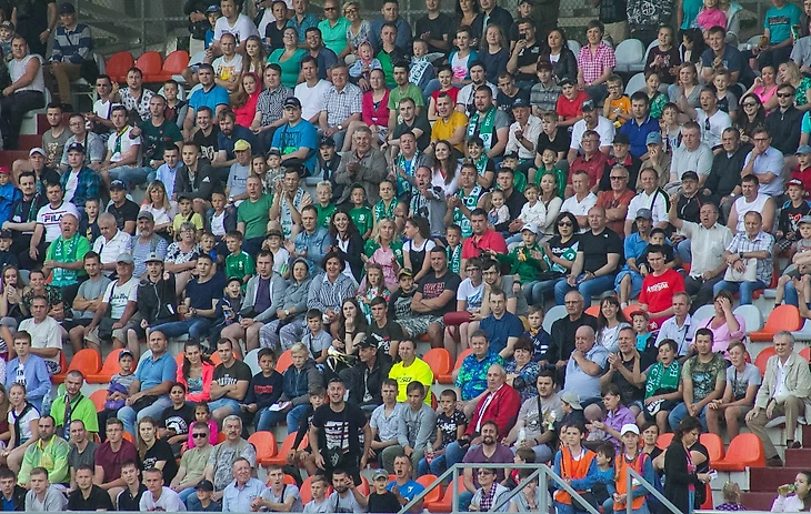 Для лучшего вида я решил забраться на самый верх лестницы (на фото рядом с Палычем) и принять максимально удобное положение, насколько это возможно. Оказалось, очень даже возможно. Главное с нее не свалиться. Тогда и футбол будет не нужен. Остальные болельщики смотрели матч стоя, так что мое место на временном секторе оказалось еще и с повышенным уровнем комфорта. Другого способа увидеть зеленый прямоугольник поля все равно нет.