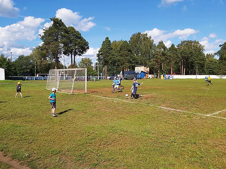 Мы проезжаем мимо футбольной площадки, на которой проходит турнир ко Дню железнодорожника. Как оказалось, в Бабаево существует даже целая Бабаевская футбольная лига – БФЛ. Играют 6 на 6, а на площадке можно встретить игроков местного «Олимпика». Тренировочный процесс 11 на 11 в Бабаево выстроить достаточно сложно, поэтому многие игроки получают практику в таких вот турнирах.