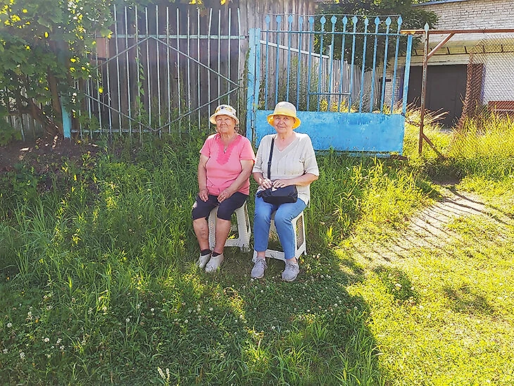 Чуть в стороне от ворот расположились и две болельщицы весьма солидного возраста.
