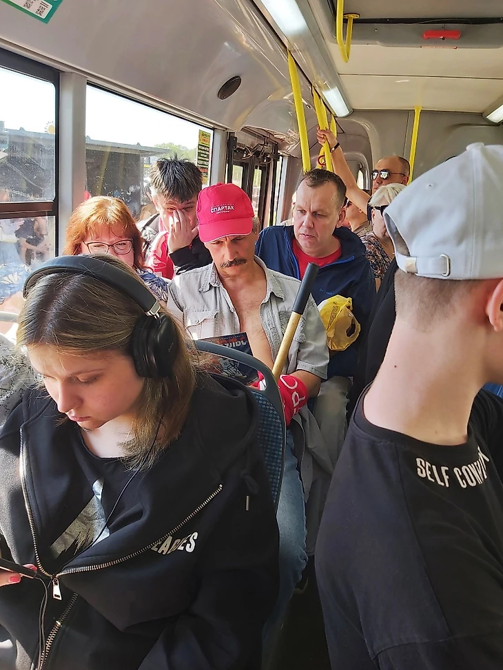 До Караваево ходит автобус 101, на который мы с Иваном и сели. Ехать решили заранее, так как была вероятность, что ближе к матчу в автобус будет банально не зайти. Но даже за полтора часа до игры в автобусе было людно. К слову, совсем необязательно, что все его пассажиры ехали именно на футбол.
