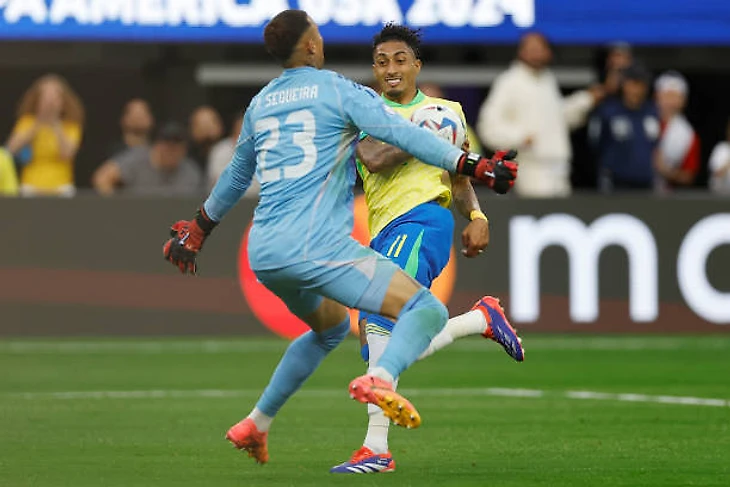 На 22 минуте игры был пограничный момент в штрафной площади сборной Коста-Рики. Полузащитник Куирос уронил Винисиуса, но рефери пенальти не назначил. На 25 минуте возможность открыть счёт в матче появилось у правого вингера бразильцев Рафиньи, но с его ударом блестящяя справился вратарь Патрик Секейра.