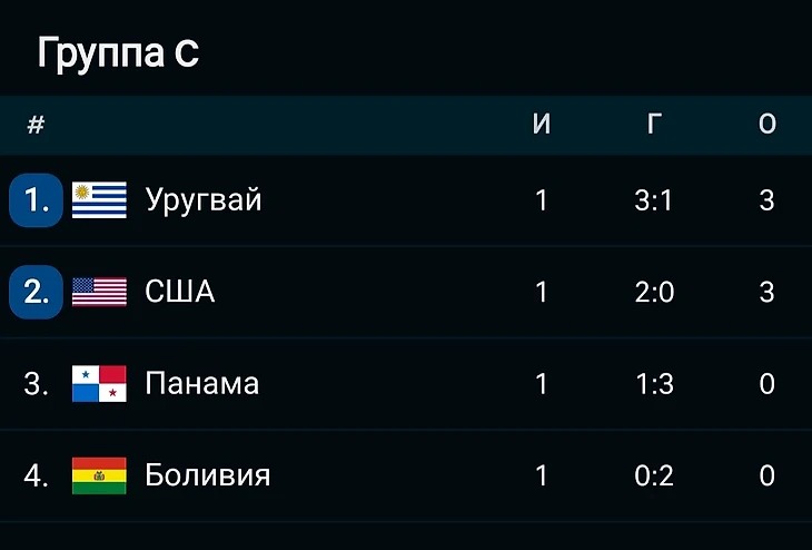 Вот так завершился первый тур Копа Америки 2024. Пишите какой результат вас больше всего удивил и чего ждёте от второго тура.