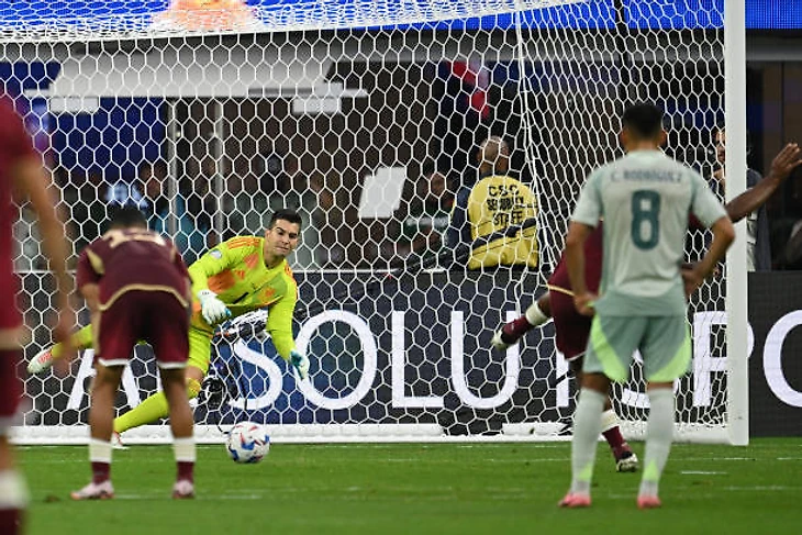 После этого давление мексиканцев стало ещё больше. Все силы были брошены на то, чтобы отыграться. На 69 минуте матча очередной заброс Киньонеса в штрафную превратился в опасный удар, с которым великолепно справился голкипер Ромо. На 77 минуте удар мексиканца Луиса Ромо пришёлся выше створа ворот венесуэльцев. На 84 минуте матча после удара мексиканца Хорхе Санчеса мяч угодил в руку Мигеля Наварро. После того как арбитр встречи Клаус посмотрел эпизод на мониторе, он назначил пенальти в ворота сборной Венесуэлы. Орбелин Пинеда не смог переиграть вратаря и тот совершил очередное великолепное спасение в матче.