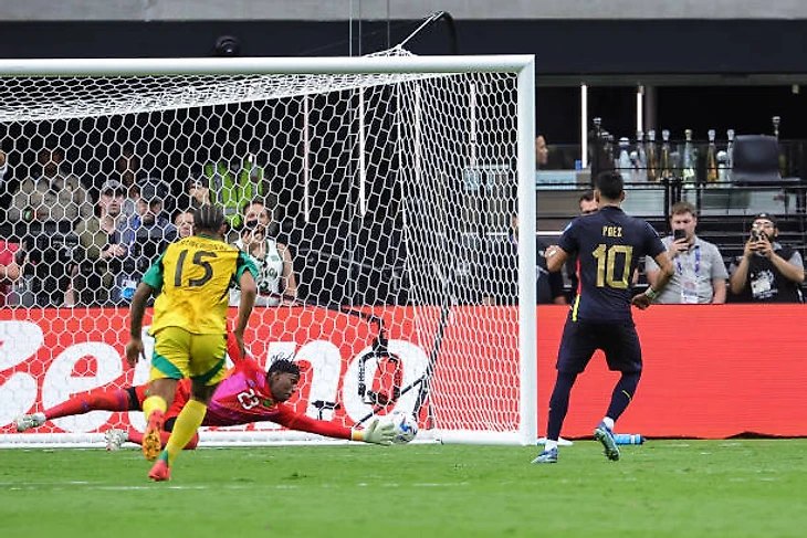 На 45 минуте матча эквадорцы получили право на штрафной неподалёку от ворот соперника. Навесная передача последовала точно на голову Феликса Торреса. Его удар пришёлся в защитника сборной Ямайки Грега Ли. Эквадорцы сразу же начали сигнализировать арбитру, что мяч попал в руку Ли, но главный судья игру рукой в данном эпизоде не усмотрел. Однако после подсказки видео ассистента отправился смотреть эпизод к монитору, после чего указал на точку. К мячу подошёл Паес и хладнокровно переиграл голкипера ямайцев Уэйта.