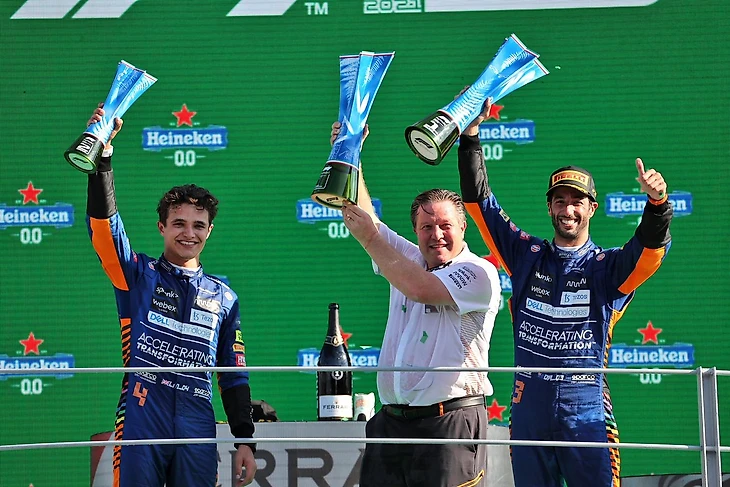А вот и триумфаторы этого уикенда, гонщики Макларена. Они неплохо провели квалификацию, улучшили позиции в спринте и взяли своё в гонке. Практически всё прошло как надо, и они сделали дубль. Очень важная победа для команды и особенно для Дэна, тяжело проводившего первую половину сезона.