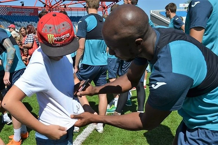 После окончания тренировки народ массово рванул на легкоатлетическую дорожку фотографироваться со своими любимцами. А журналистам достались комментарии тренерского штаба, руководства и игроков, у которых еще остались силы ответить на вопросы.