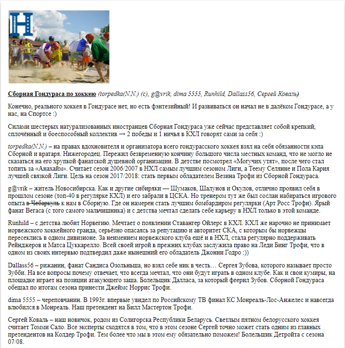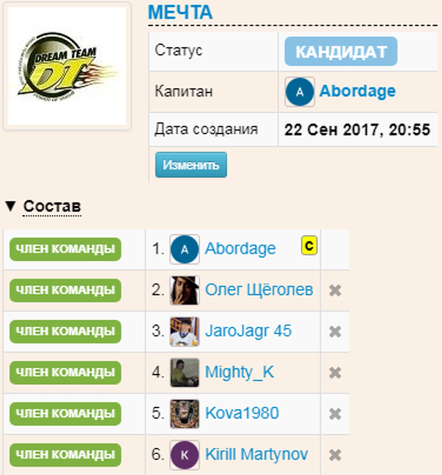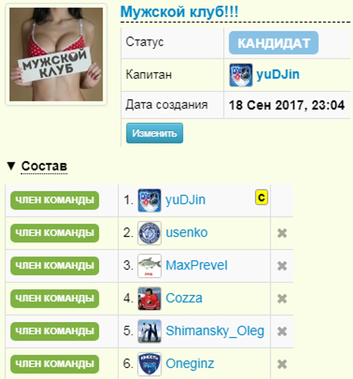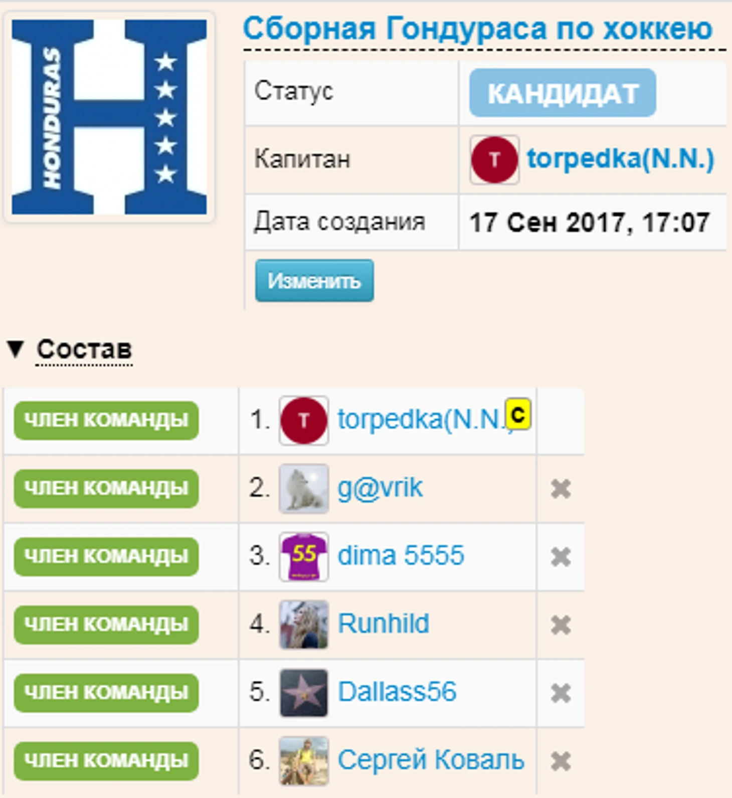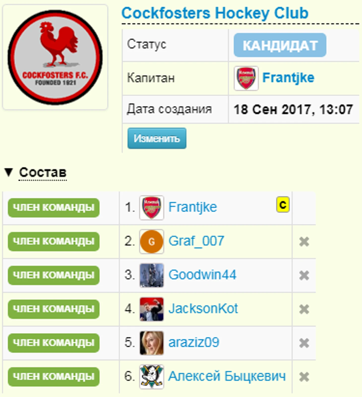 я Frantjke - победитель масс-старта ЧМ-2017, в НХЛ буду играть уже 4 сезонGraf_007 - всегда во всех турнирах у нас в топеАлексей Быцкевич и Araziz - у нас поставщики информации, твиттер, ротоворды и прочее, первый вообще только в НХЛ и играет.JacksonKot и Goodwin44 - ребята из моей фентези команды по футболу, но в НХЛ мы тоже играли первый раз в том году вместе, а так они тоже уже 4-5 сезон играют.Итого - команда думающих, опытный состав, есть беседа по КХЛ и НХЛ в ВК и телеге, там всё обсуждаем всегда, играем до конца.Хотим побороться за шанс сыграть в Вашем турнире.
