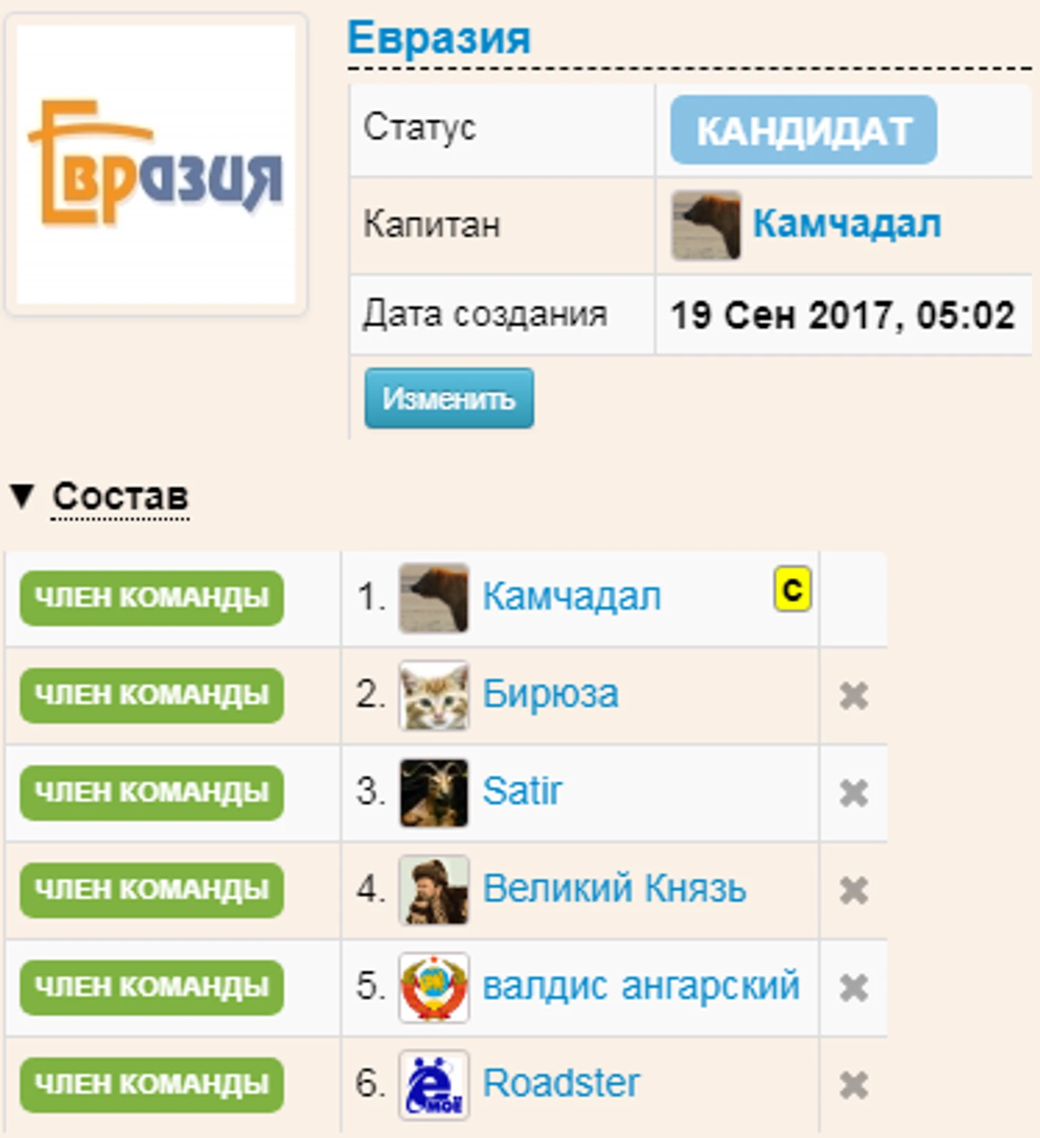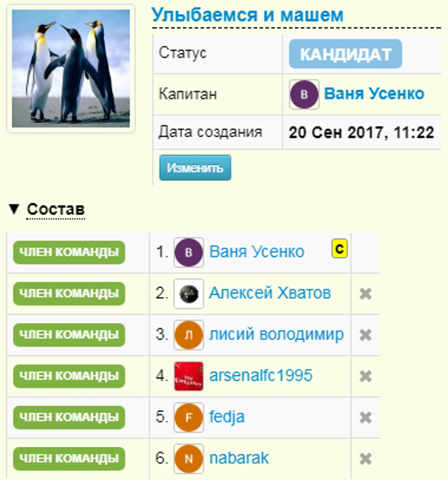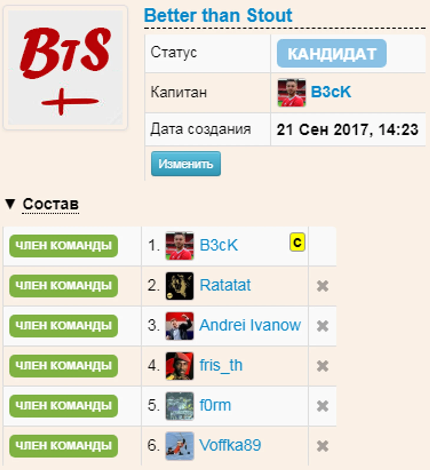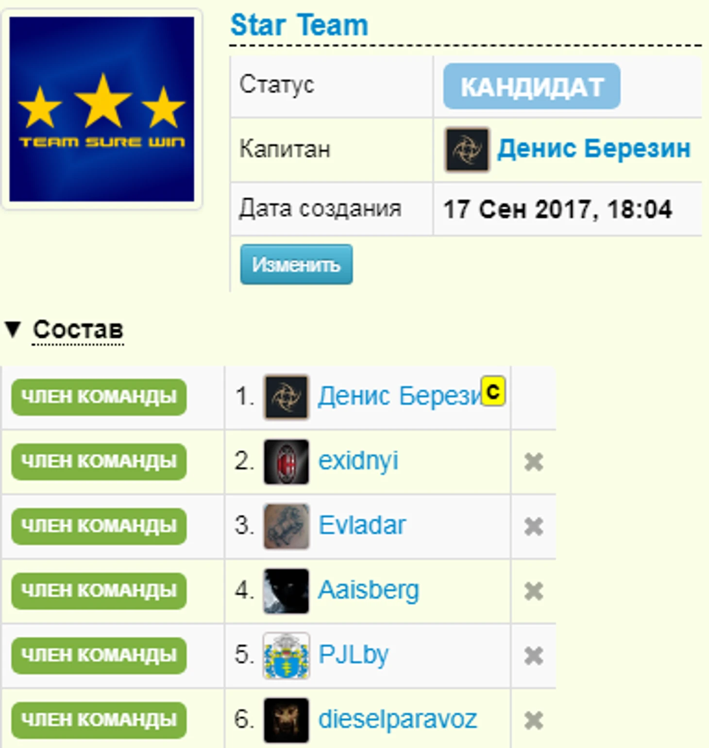 я Frantjke - победитель масс-старта ЧМ-2017, в НХЛ буду играть уже 4 сезонGraf_007 - всегда во всех турнирах у нас в топеАлексей Быцкевич и Araziz - у нас поставщики информации, твиттер, ротоворды и прочее, первый вообще только в НХЛ и играет.JacksonKot и Goodwin44 - ребята из моей фентези команды по футболу, но в НХЛ мы тоже играли первый раз в том году вместе, а так они тоже уже 4-5 сезон играют.Итого - команда думающих, опытный состав, есть беседа по КХЛ и НХЛ в ВК и телеге, там всё обсуждаем всегда, играем до конца.Хотим побороться за шанс сыграть в Вашем турнире.