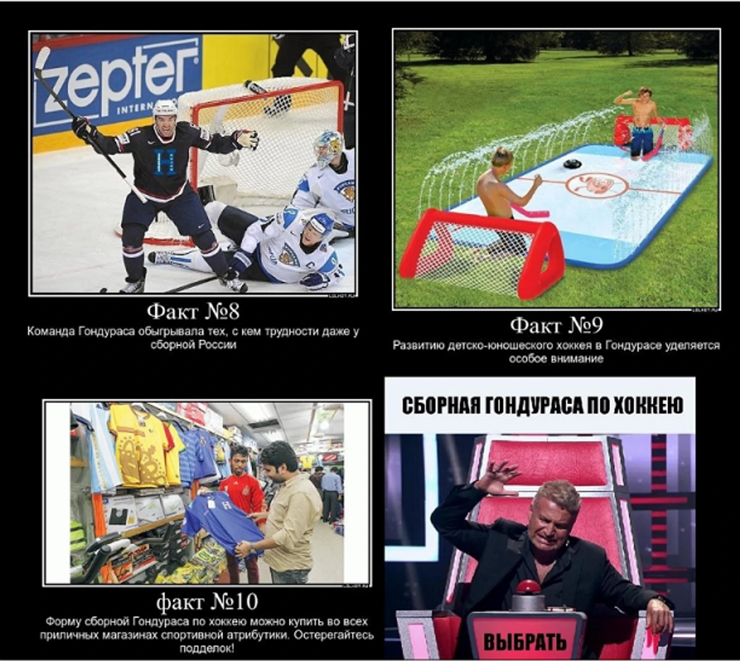 Кроме того, считаю необходимым напомнить Вам о том, что козырями нашей команды будет являться предельная дисциплинированность и самоотверженность.К тому же только у нашей команды есть уникальное оружие: ведь вместо клюшек у нас в руках - МАЧЕТЕ!!!!)))))))))))))))
