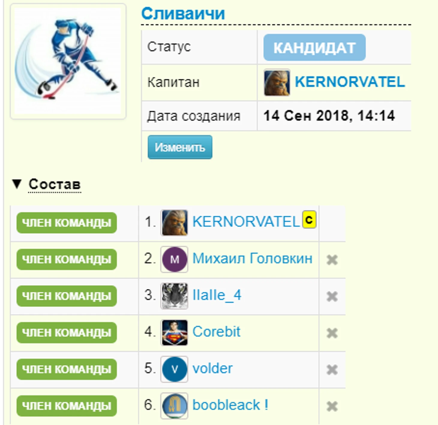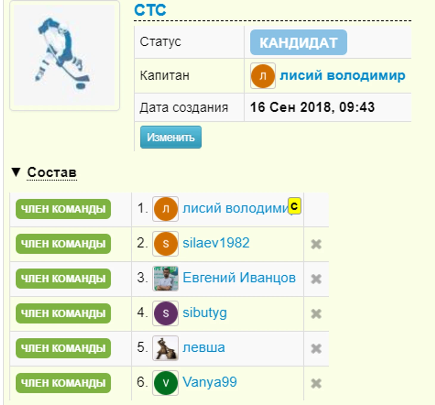 Вторая часть команды, это уже не молодые, но все еще перспективные фентези игроки)mix88. Михаил возобновил фентези карьеру в этом сезоне в футбольной «Истине» и принял приглашение поучаствовать и в нашем хоккейном проекте. В командном турнире НХЛ Михаил с успехом играл за «SportFansGang» в сезоне 15/16.Шваб, Ottena. Юра и Олег новички командных турниров, но оба на протяжении последних сезонов неизменно занимают места в top100 различных хоккейных турниров на sports.ru.Капитан команды sims82. Пять лет игры в Team Head to Head NHL за «Ice Wolves» и «Hardcore». От сезонов проведенных в этих командах остались только положительные воспоминания и хочется верить что в новой команде удастся достичь не менее значимых результатов.