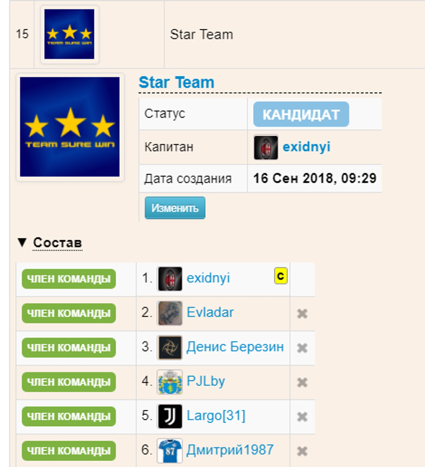 Извиняюсь, если ошибаюсь. Название команд смутило. Подумал тобой кто-то рулил т.е делал замены и создавал команды. Уж больно почерк Сергея одноименные названия давать
