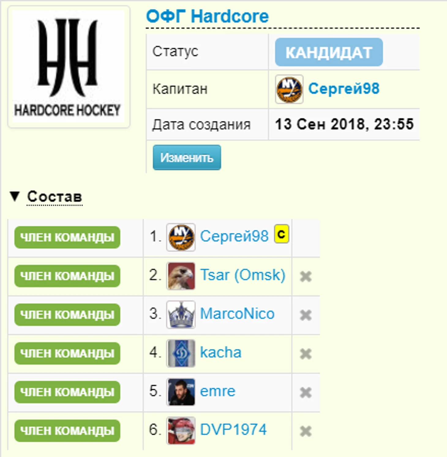 ОФГ Hardcore - давний участник нашего турнира, прошлогодний финалист Кубка Стэнли, потеряла в межсезонье двух своих членов, а в период заявки еще и третьего, что лишило команду ее заслуженного места в турнире. На смену Максу sims82, ставшего на путь ИСТИНный, и куда-то пропавшего Ценителя Кальчо, пришли kacha и хорошо известный по выступлениям в Октябре Дима emre. Из-за форс-мажора вместо Organaizer в команду пришел хорошо известный по олд-скульному H2H Вольского мастер фэнтази DVP1974.