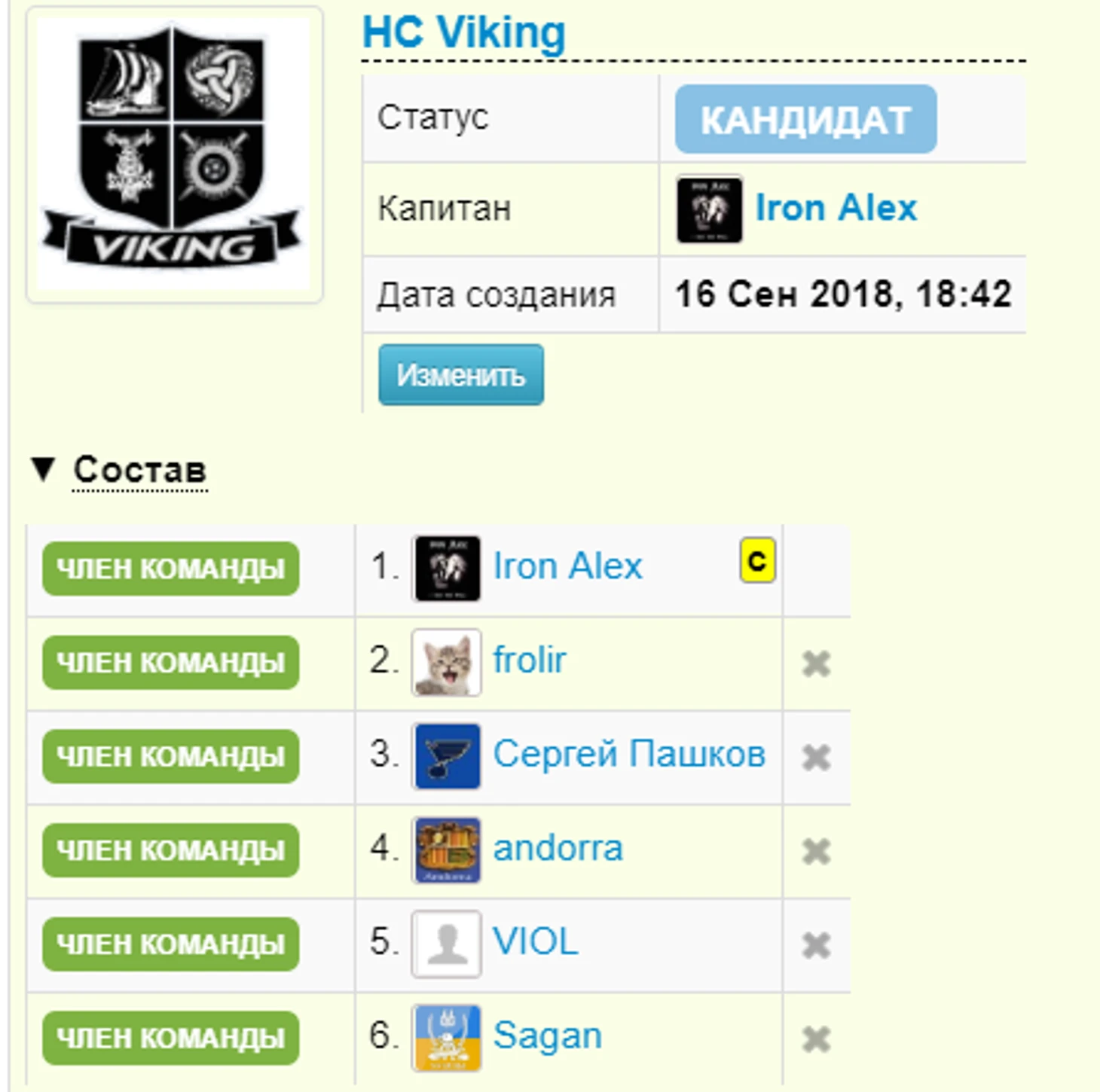 Ссылка на представление команды HCViking:
