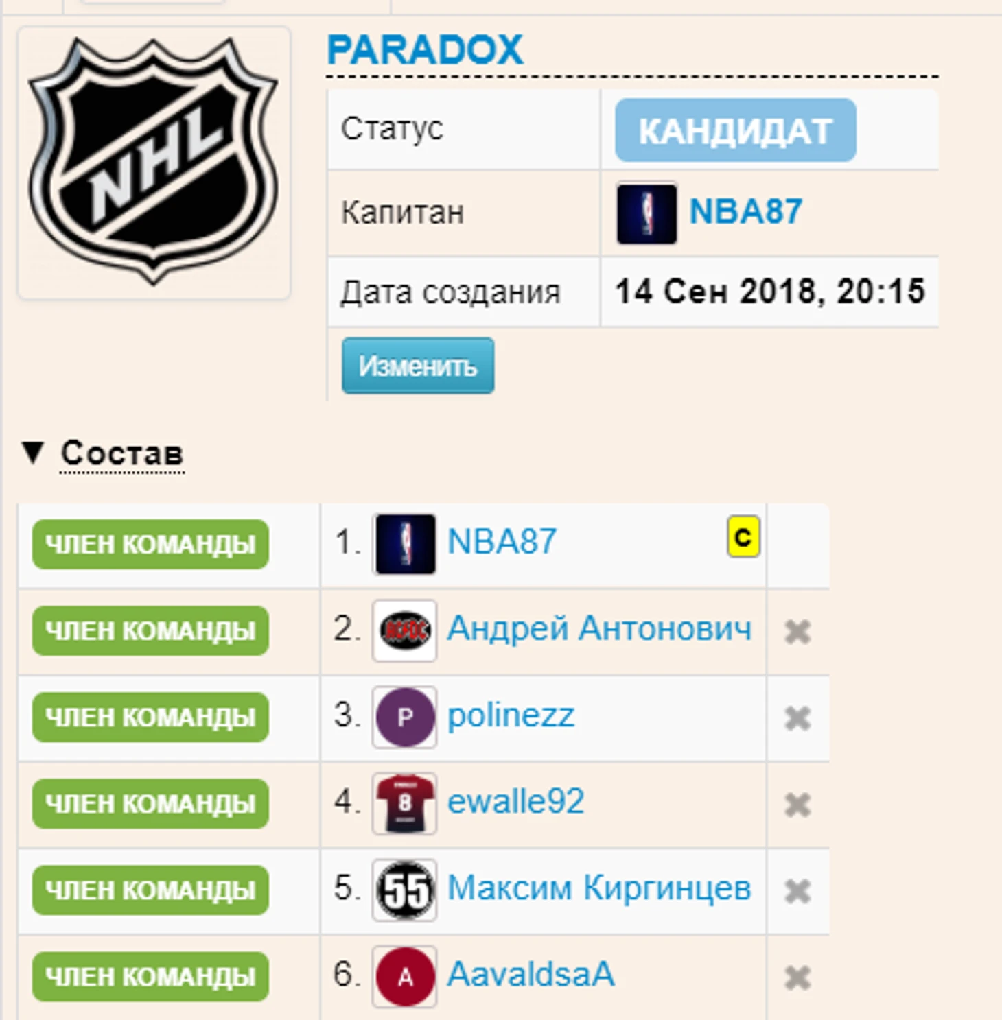 Изначально в этом году нашей командой заявились в турнир КХЛ и поняли по качеству собранных игроков, что мы может замахнуться и на НХЛ))) Решили создать свою команду СТС для участия Team H2H NHL, так как опыт игры есть у всех и чувствуем уверенность в своих силах. Знаем, что эта команда в отличии от наших прошлогодних не будет «мертвой», будет коммуникация между участниками. Сплав молодости и опыта!!!