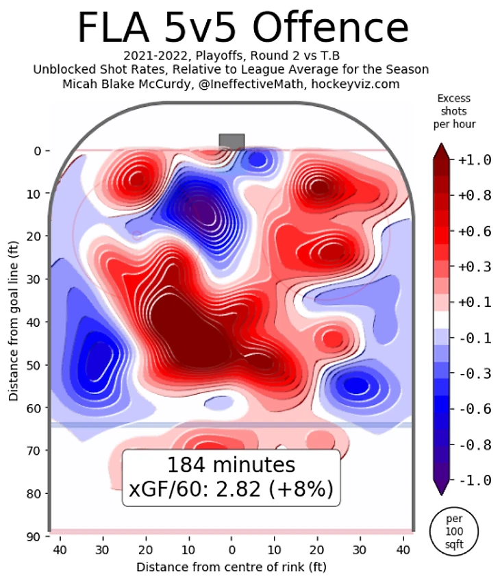 При игре против быстрых атак, "Молнии" позволяли сопернику заходить в свою зону с контролем шайбы, но эффективно предотвращали голевые моменты после таких атак - "entry carries with a chance" (6,6 в пересчете на 60 минут во втором раунде у "Флориды" против 9,9 в первом раунде и 9,7 в регулярном чемпионате).