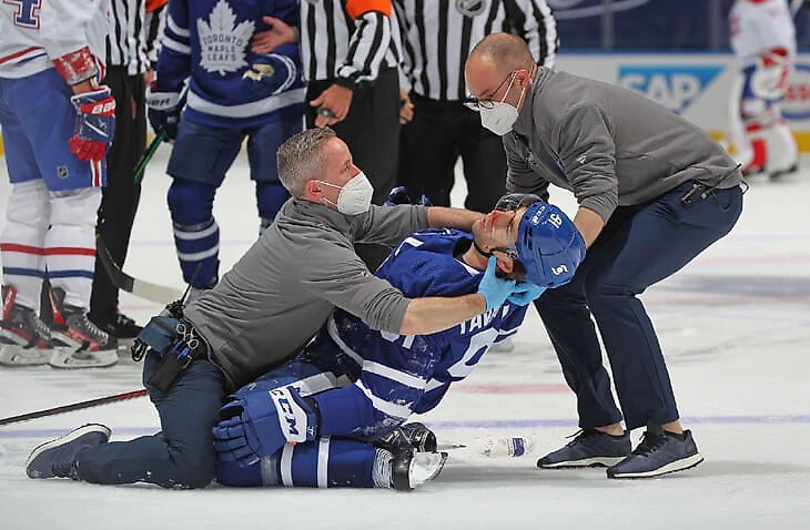 Жесть в Торонто: капитан «Лифс» потерял сознание после удара коленом, его увезли в больницу