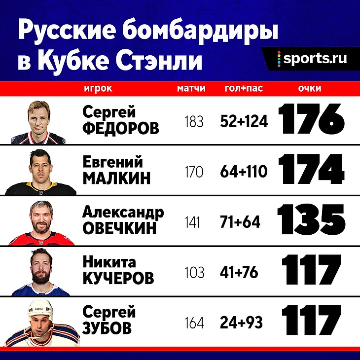 Интересный факт номер один: Никита Кучеров теперь в четверке лучших русских бомбардиров в истории Кубка Стэнли.
