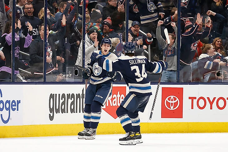Чинахов забил первый гол в НХЛ и помог «Коламбусу» сделать камбэк: партнер от радости повалил его на лед