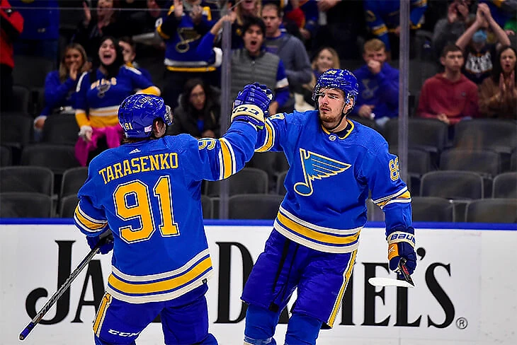 По очкам внутри своего дивизиона «Блюз» уступают только «Миннесоте» Кирилла Капризова и выглядит одной из самых интересных команд Запада – и это не в последнюю очередь благодаря русским нападающим, которые выдают отличный сезон.