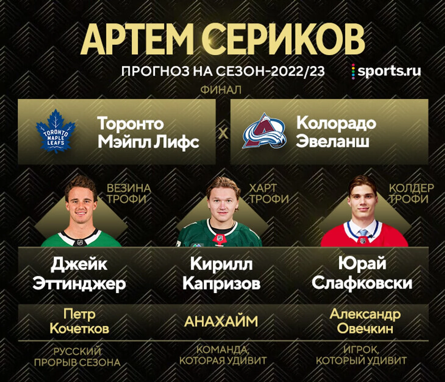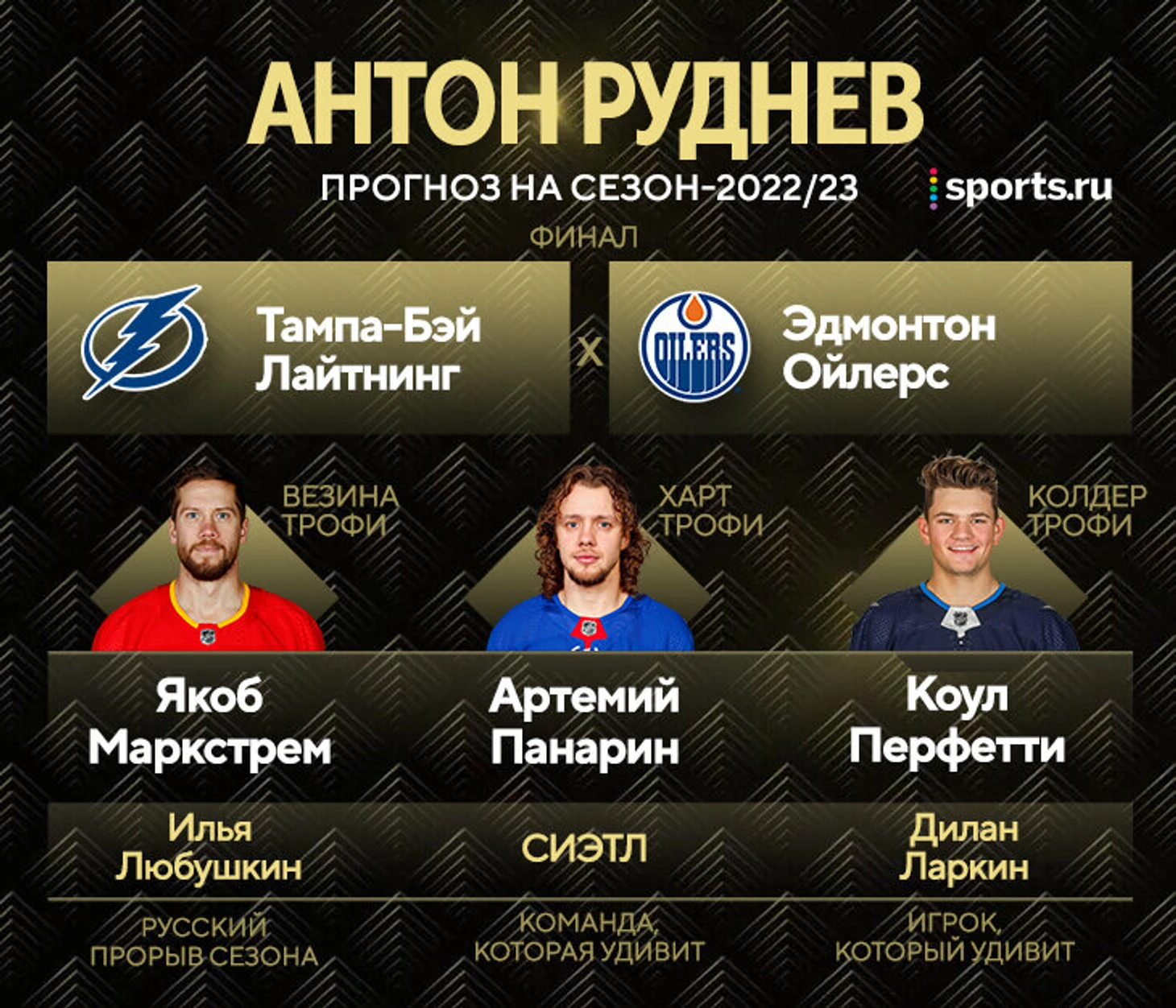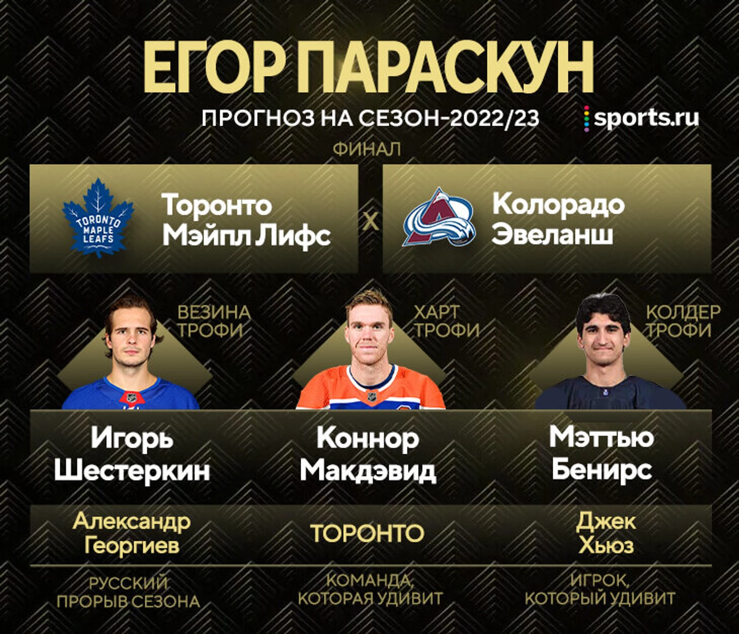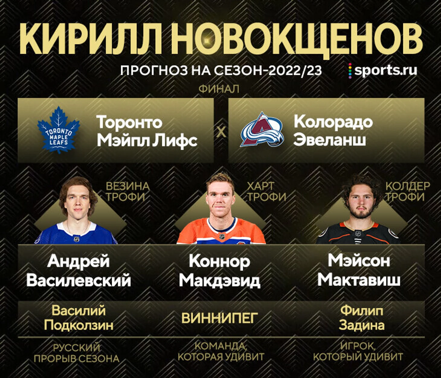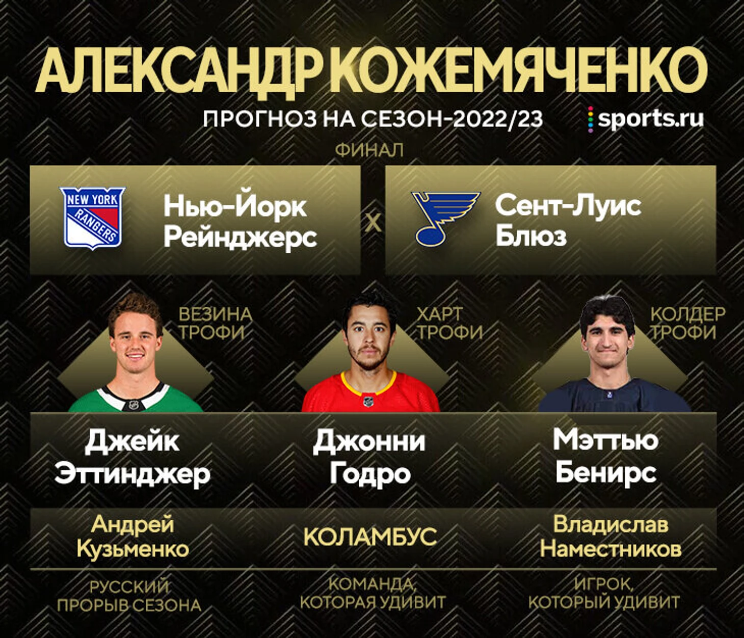 Игорь Шестеркин, «Рейнджерс». Поставлю на него, раз в прошлом сезоне был финалистом «Харта». Я вообще думаю, что «Рейнджерс» станут одним из главных разочарований – просто в силу того, как высоко они забрались в плей-офф-2022. Теперь все будут ждать от них следующего шага вперед, но, мне кажется, они весной и так прыгнули выше головы.