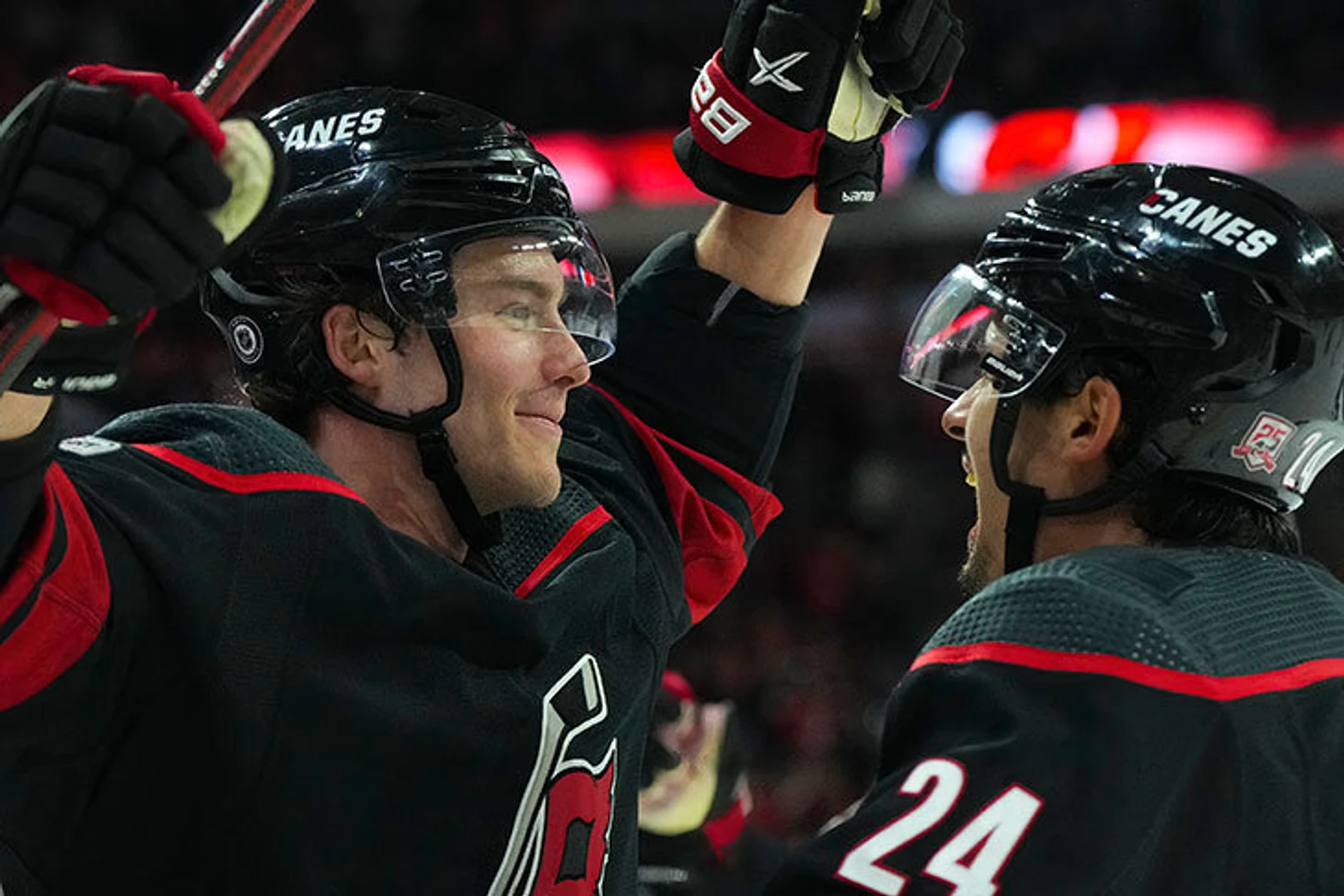 Интересно, что в нынешней «Каролине» только у одного игрока в среднем больше очка за игру: у Себастьяна Ахо эта соотношение совсем на чуть-чуть превышает единицу – 50 (25+25) баллов за 49 встреч. При этом во всей НХЛ аж 46 хоккеистов идут по графику «очко и более за игру», и это тоже говорит о том, что в «Каролине» очки распределяются более ровно и нет одного ярко выраженного лидера.