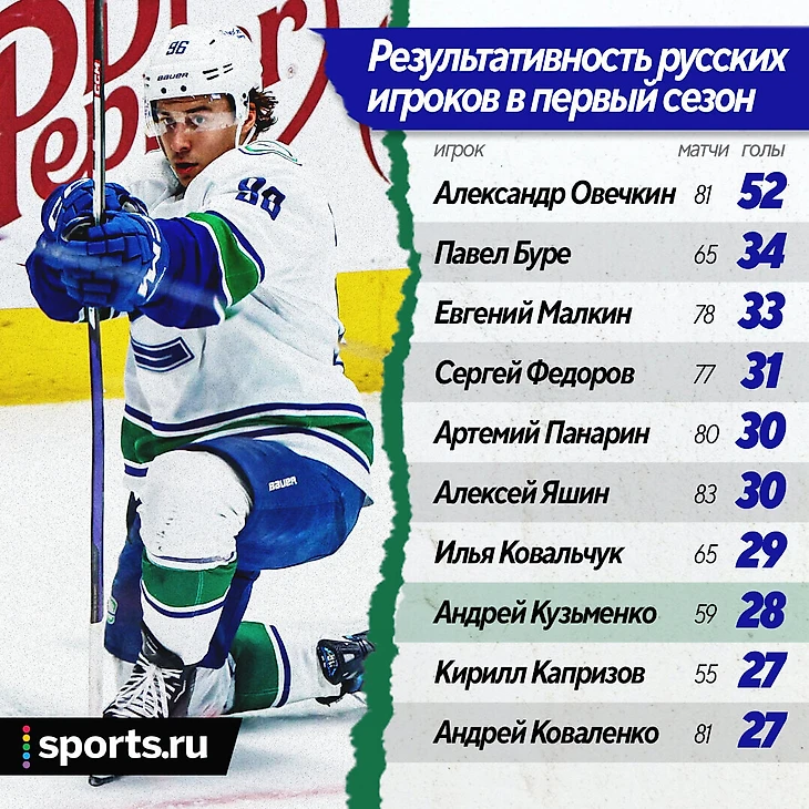 Среди всех русских в истории НХЛ у него уже 8-й показатель по голам в первом сезоне. Настичь Овечкина с его 52 голами нереально, но превзойти достижение другой легенды «Ванкувера» – Павла Буре – ему вполне по силам. Разве что игр больше уйдет, но кому это важно, если Кузьменко так хорош в первый год в лиге даже при двух разных тренерах.