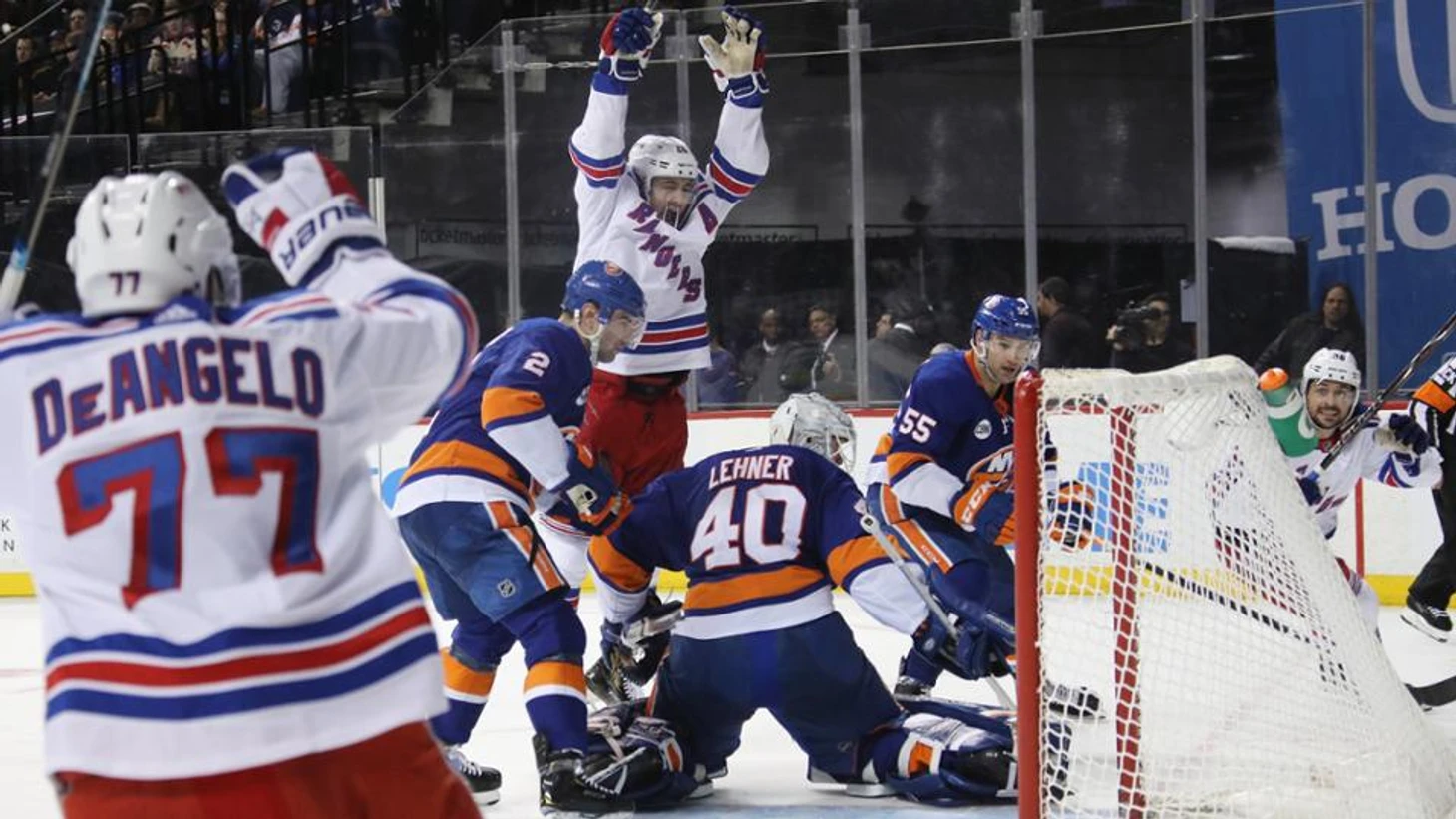 "Нью-Йорк Айлендерс"-"Нью-Йорк Рейнджерс" 1:2.Матс Цуккарелло за 5 минут до конца матча забросил победную шайбу,Александр Георгиев отразил 24 броска."Рейнджеры" прервали серию из 5 поражений подряд.