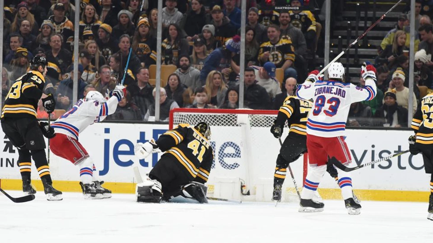 "Бостон Брюинз"-"Нью-Йорк Рейнджерс" 2:3.Мика Зибанеджад во второй половине 3 периода забросил победную шайбу.Мика Зибанеджад забросил 2 шайбы,Матс Цуккарелло отдал 2 результативные передачи,Хенрик Лундквист отразил 27 бросков."Рейнджеры" выиграли 3 матч подряд.