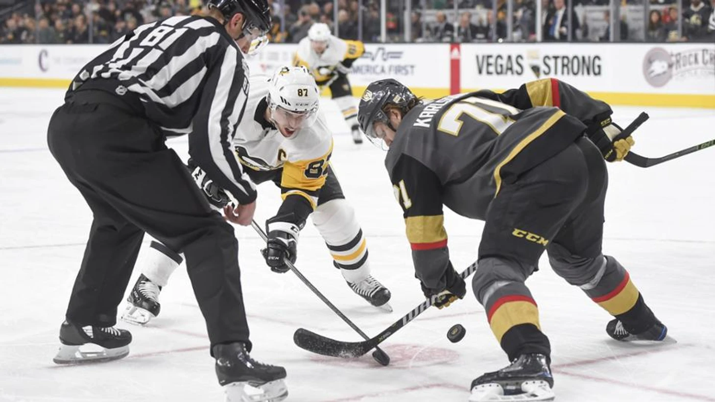 "Вегас Голден Найтс"-"Питтсбург Пингвинз" 7:4.Джонатан Маршессо забросил 3 шайбы,Макс Пачиоретти и Вильям Карлссон набрали по 2 очка (1+1),Пол Штясны и Колин Миллер отдали по 2 результативные передачи,Марк-Андре Флери отразил 34 броска.У гостей Джейк Гюнтцель отдал 2 результативные передачи.