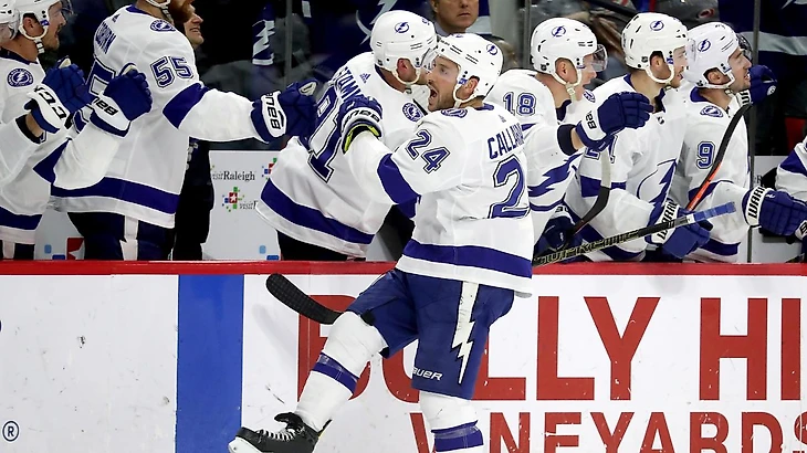 "Каролина Харрикейнз"-"Тампа-Бэй Лайтнинг" 3:6.Хозяева дважды вели по ходу матча.но пропустили 4 шайбы подряд и проиграли.Стивен Стэмкос набрал 3 очка (1+2),Виктор Хедман отдал 3 результативные передачи,Брэйден Пойнт и Райан Макдонах набрали по 2 очка (1+1),Джей-Ти Миллер отдал 2 результативные передачи,Никита Кучеров отдал результативную передачу,Луи Доминге отразил 25 бросков.У хозяев Джордан Стаал набрал 2 очка (1+1),Евгений Свечников отдал результативную передачу.Янни Гурд в первом периоде получил матч-штраф."Молнии" выиграли 7 матч подряд.