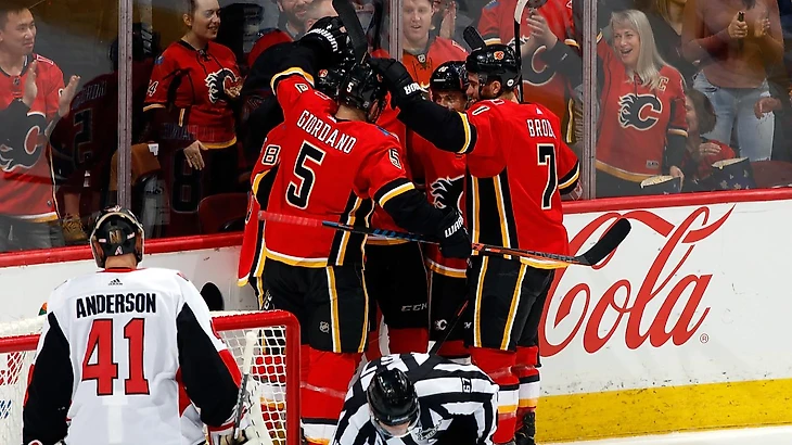 "Калгари Флэймз"-Оттава Сенаторз" 5:1.Мэттью Ткачук с Гарнеттом Хэтауэем и Эндрю Маджиапане набрали по 2 очка (1+1),Дерек Райан и Михал Фролик отдали по 2 результативные передачи,Майк Смит отразил 18 бросков.