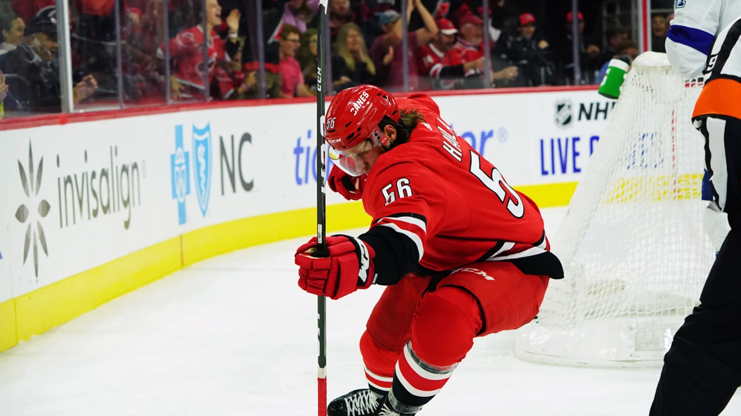 "Каролина Харрикейнз"-"Тампа-Бэй Лайтнинг" 4:3 (ОТ).Джэйкоб Славин в овертайме принёс победу хозяевам.Дуги Хэмилтон набрал 2 очка (1+1),Андрей Свечников отдал 2 результативные передачи,Петр Мразек отразил 10 бросков.У гостей Михаил Сергачёв отдал результативную передачу.