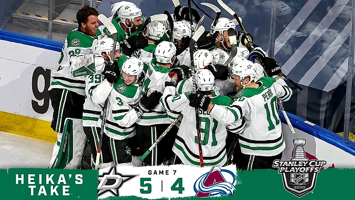 "Колорадо Эвеланш"-"даллас Старз" 4:5 (ОТ).Йоэль Кивиранта в овертайме принёс победу гостям.Йоэль Кивиранта забросил 3 шайбы,Александр Радулов забросил 2 шайбы,Йон Клингберг и Миро Хейсканен отдали по 2 результативные передачи,Антон Худобин отразил 40 бросков.У хозяев Владислав Наместников забросил 2 шайбы,Назим Кадри и Андре Бураковски набрали по 2 очка (1+1),Никита Задоров отдал результативную передачу.!Звёзды" вышли в полуфинал.