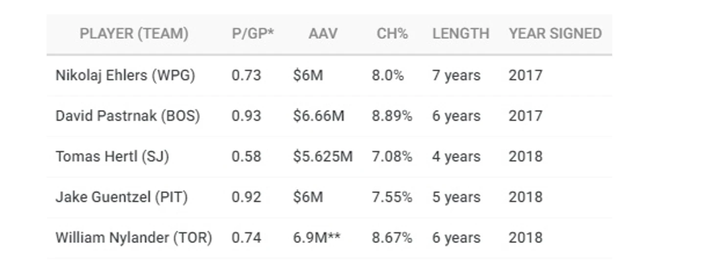 ** - кэп-хит Нюландера в сезоне 2018-19 был пропорционален $10.2 миллионам из-за пропущенного времени в переговорах