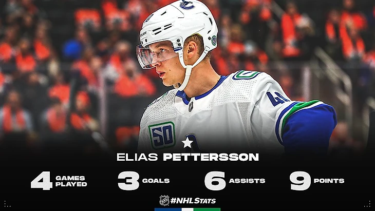 Первая звезда - Элиас Петтерссон, "Ванкувер" - 4 игры, 3+6, "+2"