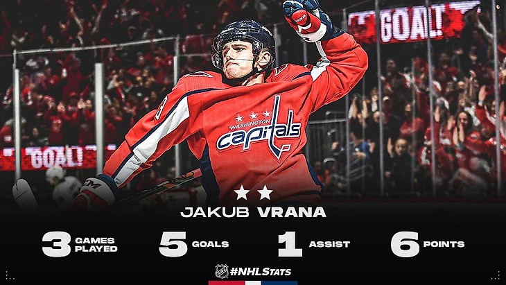 Вторая звезда - Якуб Врана, "Вашингтон" - 3 игры, 5+1, "+5"