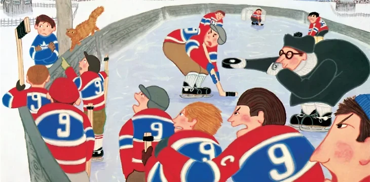 An illustration by Sheldon Cohen, from Roch Carrier's The Hockey Sweater.