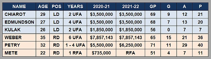 Возможно на взгляд ГМ  Эдмундсон является лучшим выбором с кэпхитом $3.5 млн из всех защитников НХЛ. Но трудно забыть альтернативные кандидатуры игроков обороны UFA на это место.