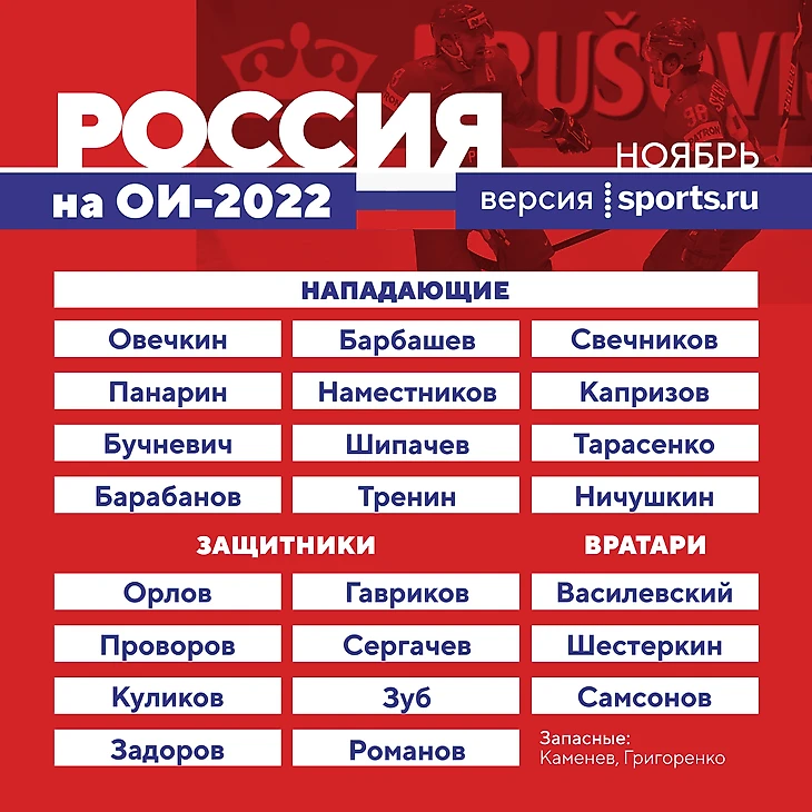 Сборная России на Олимпиаду-2022. Версия ноября: теперь без Бобровского, но с Ничушкиным и Задоровым