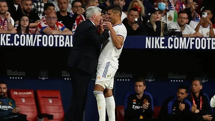 При замене Каземиро на Феде Вальверде, которая произошла на 60-й минуте матча, путь бразильца на скамейку пересеклась с Анчелотти, которого он крепко обнял и с которым прокомментировал что-то среднее между очень явно радостным и нежным "оскорблением"...