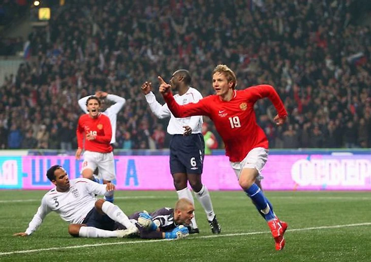 Исторический матч России и Англии с дублем Павлюченко в октябре 2007-го стал к тому же одним из первых официальных матчей сборных, сыгранных на синтетике. Перед игрой англичане были недовольны, а игроки их сборной получили дополнительные страховки на случай травмы.