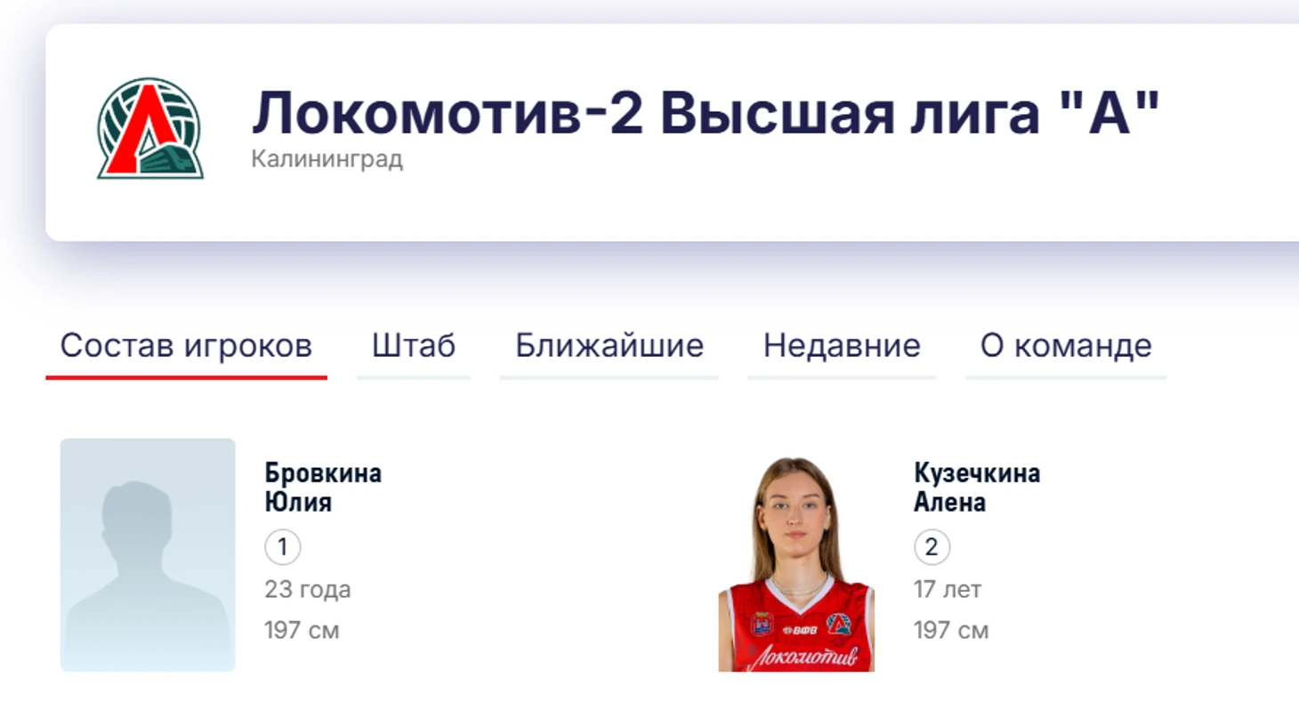 Сейчас профиль Бровкиной на сайте Всероссийской федерации волейбола действительно указан в составе «Локо-2». А вот на сайте самого клуба она по-прежнему числится в основе.
