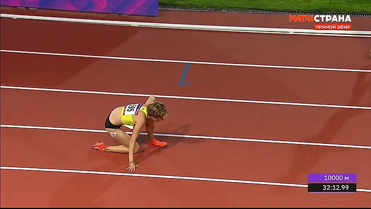 Из-за падения бегунья потеряла около 10 секунд, но поднялась и все-таки завершила дистанцию.