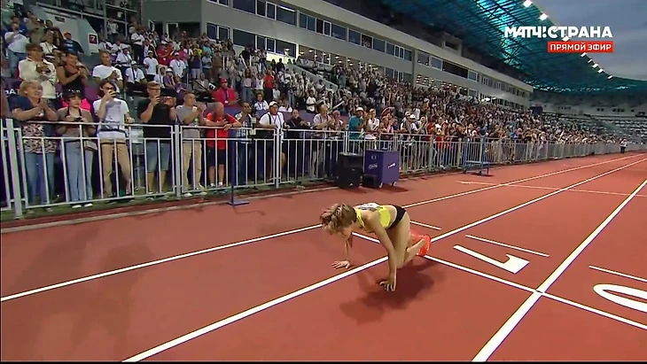 А преодолев черту, снова упала. К Ермаковой подбежали врачи, и ее увезли с арены на коляске.