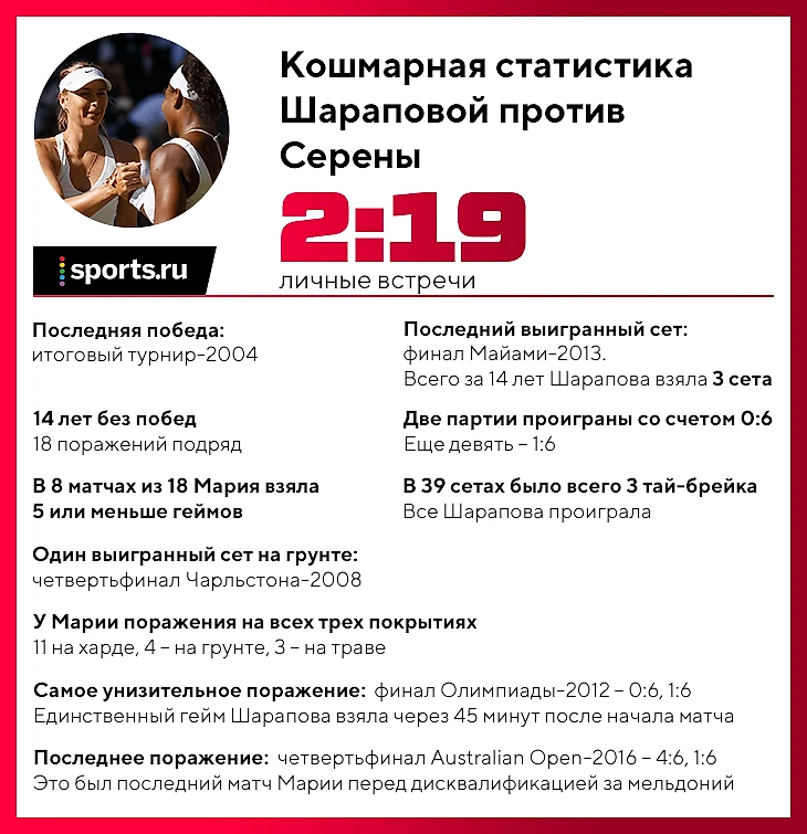 А у Серены была бы особая мотивация, потому что ей очень не понравилось написанное о ней в автобиографии Марии. И Серена обиды не забывает.