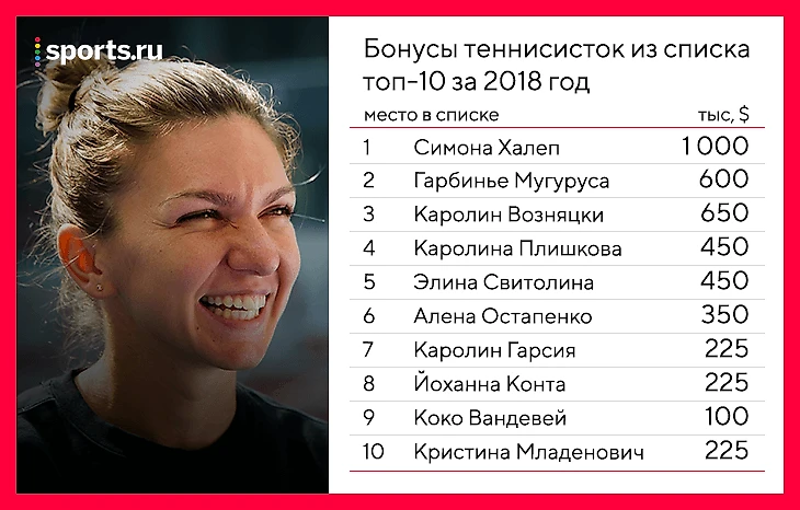 Именно бонусные деньги, о которых 10 лет назад говорила Алластер, и получила Халеп.