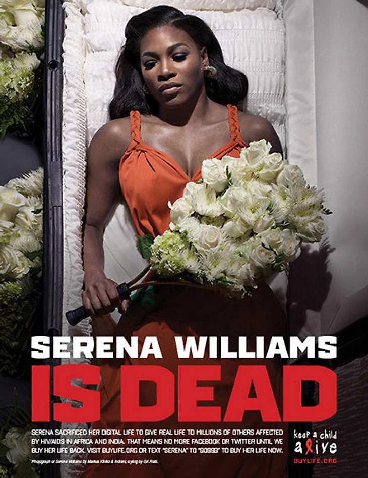 Но Серене необязательно раздеваться для того, чтобы привлечь внимание к общественным проблемам. Так, одна из самых мощных кампаний с ее участием прошла в 2010 году и была направлена на борьбу с ВИЧ и СПИД в Африке и Индии.
